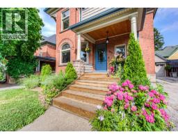 350 Queen Street S is a rare & beautifully restored century home just one block from Victoria Park, steps to the heart of downtown Kitchener, blending timeless charm with modern refinement. Inside, the home's historic character shines through original doors, rich hardwood floors, intricate millwork, and exquisite stained-glass windows. The elegant living room, centered around a cozy gas fireplace, flows effortlessly into the formal dining room. Original pocket doors offer the option of privacy while preserving the home's classic appeal. The heart of the home—the kitchen—has been thoughtfully updated with white granite countertops, custom cabinetry, and high-end stainless steel appliances, including a gas stove, warming drawer, trash compactor, under-counter bar fridge, and heated floors for an added touch of luxury. Upstairs, the second level features three generous bedrooms, including a peaceful primary suite with large windows and abundant natural light. The spa-inspired main bathroom includes double sinks, quartz countertops, a soaker tub, and a walk-in shower. A convenient second-floor laundry room enhances everyday functionality. The third-floor loft has been completely reimagined as a stylish and versatile in-law suite, complete with a modern kitchenette, cozy living area, a beautifully appointed bathroom with stacked subway tile and a floating wood vanity, and an additional bedroom offering privacy for guests or extended family. Outside, the private backyard retreat is designed for low-maintenance enjoyment, showcasing a built-in BBQ with black granite counters, a pergola, and lush, refined landscaping. A full-height basement with a separate entrance presents exciting potential for added living space, a home office, or another in-law suite. Meticulously upgraded with new windows, new boiler system, extensive exterior improvements, restored staircases, a fully renovated kitchen and loft, and a complete electrical update- this one-of-a-kind! (id:61594)