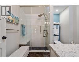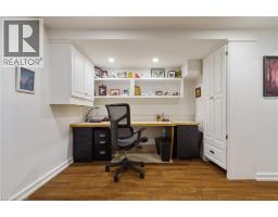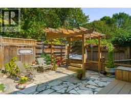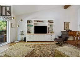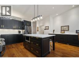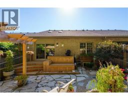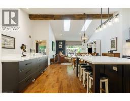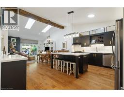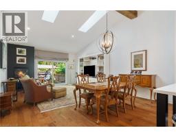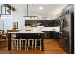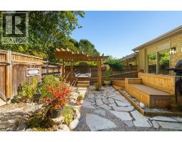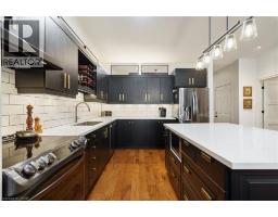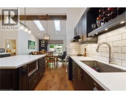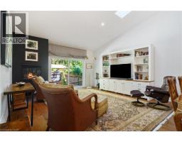 This Fabulous Freehold is a Dundas Downsizer’s Dream, combining modern sophistication with an unbeatable escarpment backdrop. Rarely offered, this high-end residence holds the perfect balance of comfort, style, and convenience, all within walking distance to downtown, the Dundas Valley Golf and Curling Club, conservation trails, schools, and parks. From the moment you arrive, the curb appeal impresses with manicured landscaping, an interlocking stone drive, and a single-car garage with inside entry. Inside, every detail has been thoughtfully designed with exquisite fixtures and finishes throughout. The welcoming foyer with slate floors opens to an expansive open-concept kitchen, dining, and living area, all set under soaring cathedral ceilings. The chef-inspired kitchen features sleek black cabinetry with designer hardware, white quartz countertops, stainless steel appliances, an island breakfast bar with pendant lighting, and a sidebar offering extra storage. The dining space is highlighted by a dramatic exposed beam at the peak of the ceiling, while the living room invites relaxation with a custom built entertainment unit, a stunning fireplace wall, and walk-out access to the private backyard. The main floor continues with a serene primary suite featuring a walk-in closet and a spa-like 3-pc ensuite, along with a versatile second bedroom complete with a south-facing bay window, custom bookcase wall, and built-in desk—ideal for guests or a home office. A second 3-pc bath and a convenient laundry room with pantry storage complete this level. The fully finished lower level extends the living space with a generous family room, third bedroom, 2-pc bath, dedicated office area, utility room, and workbench/storage room. Outdoors, the private yard is a true retreat, with a recently stained deck, pergola with swing, stone walkway, and breathtaking escarpment views framed by mature trees—a tranquil, low-maintenance oasis perfect for entertaining or unwinding in nature. (id:61594)
