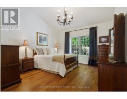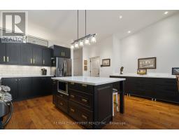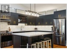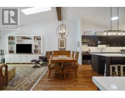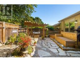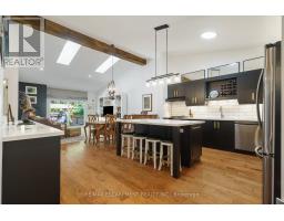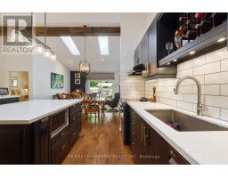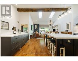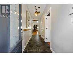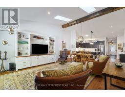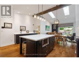 This Fabulous Freehold is a Dundas Downsizers Dream, combining modern sophistication with an unbeatable escarpment backdrop. Rarely offered, this high-end residence holds the perfect balance of comfort, style, and convenience, all within walking distance to downtown, the Dundas Valley Golf and Curling Club, conservation trails, schools, and parks. From the moment you arrive, the curb appeal impresses with manicured landscaping, an interlocking stone drive, and a single-car garage with inside entry. Inside, every detail has been thoughtfully designed with exquisite fixtures and finishes throughout. The welcoming foyer with slate floors opens to an expansive open-concept kitchen, dining, and living area, all set under soaring cathedral ceilings. The chef-inspired kitchen features sleek black cabinetry with designer hardware, white quartz countertops, stainless steel appliances, an island breakfast bar with pendant lighting, and a sidebar offering extra storage. The dining space is highlighted by a dramatic exposed beam at the peak of the ceiling, while the living room invites relaxation with a custom built entertainment unit, a stunning fireplace wall, and walk-out access to the private backyard. The main floor continues with a serene primary suite featuring a walk-in closet and a spa-like 3-pc ensuite, along with a versatile second bedroom complete with a south-facing bay window, custom bookcase wall, and built-in desk - ideal for guests or a home office. A second 3-pc bath and a convenient laundry room with pantry storage complete this level. The fully finished lower level extends the living space with a generous family room, third bedroom, 2-pc bath, dedicated office area, utility room, and workbench/storage room. Outdoors, the private yard is a true retreat, with a recently stained deck, pergola with swing, stone walkway, and breathtaking escarpment views framed by mature trees - a tranquil, low-maintenance oasis perfect for entertaining or unwinding in nature. (id:61594)