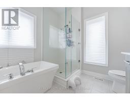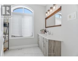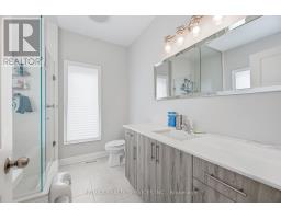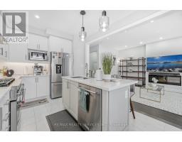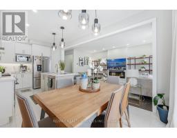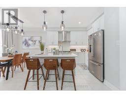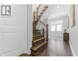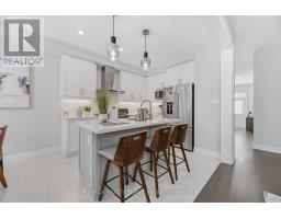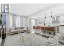 Welcome to 356 Clockwork Drive - a stunning upgraded home with $75,000 in quality improvements situated on a premium 30 x 93 foot lot (longer than most on the block).This beautifully maintained home features 9-foot ceilings on the main and second floor, smooth ceilings throughout, 4-inch engineered solid oak flooring (smooth pewter with low pearl finish), fresh Grey Owl designer paint, 200 AMP electrical service, central vacuum, 1.5 ton central air conditioning (A/C), smart garage door opener (myQ app), CAT-5 wiring, LED pot lights throughout, and convenient side entrance to basement. The open concept living area offers LED recessed lighting with dimmer, built-in 50-inch linear electric fireplace (Dimplex BLF50), TV conduit, cable and internet ready setup, and Google Home smart thermostat.The modern kitchen is fully upgraded with large white matte ceramic tiles, white upper and lower cabinetry, 24-inch deep upper cabinets above fridge, valance lighting, ivory white quartz counters (Frosty Carina) with 4cm edge, Fog Grey island, double undermount stainless steel sink, gas line for stove, and Moen Align smart touchless faucet. Premium KitchenAid stainless steel appliances including 36-inch counter-depth French door fridge, 30-inch 5 burner gas convection range, 44 dBA dishwasher, and 36-inch wall-mount canopy hood. Microwave shelf with dedicated outlet included. Elegant Art craft Henley Series pendant lighting completes the space. Upgraded oak staircase with black iron pickets and designer 12-light Tribeca Chandelier add architectural appeal. Second floor features a convenient laundry room with gas Line and high-end LG mega capacity washer (6.0 CU.FT), sidekick pedestal washer, 9.0 CU.FT gas steam dryer, and storage pedestal. Spacious primary bedroom includes LED pot lights with dimmer, 3-way light switches, and two closets, including a walk-in closet. The main bathroom features quartz countertop, upgraded mirrors, Bluetooth speaker vent, and handheld shower wand. (id:61594)