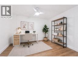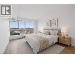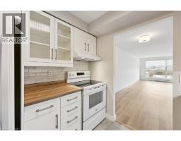 Welcome to the highly sought-after Silver Brook building, where space, style, and location come together in this beautifully updated 1 bedroom plus den condo at 358 Waterloo Avenue, nestled in Guelph’s desirable Willow neighbourhood. Offering 915 square feet of bright, open living space, this unit is ideal for downsizers seeking simplicity without compromise, first-time buyers looking for a turnkey start, or investors wanting a move-in ready opportunity in a strong rental location. The thoughtfully designed open concept living and dining area is flooded with natural light through expansive panoramic windows, showcasing stunning city views that create a warm and inviting atmosphere throughout the day. Renovated from floor to ceiling in 2025, this home features brand new finishes, including stylish flooring, updated lighting throughout, and a fully refreshed 4-piece bathroom with modern touches. The high-quality Barzotti kitchen (installed in 2022), is a standout feature with its timeless design and functionality. The spacious bedroom offers comfort and practicality with a large sliding door closet, while the versatile den provides the flexibility for a home office, guest room, or flex area. The in-suite laundry area has been intelligently designed to maximize usability, offering generous counter space and additional shelving for everyday convenience. This unit also includes a dedicated storage area, air conditioning, and one parking space. Residents of this quiet, secure, and well-maintained building enjoy the added value of condo fees that conveniently cover cable, internet, and water. Located just minutes from downtown Guelph, the Speed River, and scenic trails, this property offers the perfect balance of urban accessibility and natural beauty, making it an exceptional place to call home. Don't miss out. (id:61594)