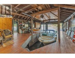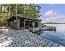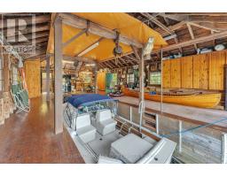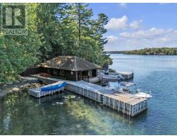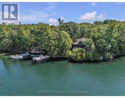 36 Bostwick Island, The Thousand Islands: An 11-Acre Estate. Discover a rare 11-acre parcel on Bostwick Island, minutes from the Gananoque Marina in the heart of the Thousand Islands. This historic 6-bedroom, 4-bath summer home (circa 1909) has been lovingly maintained by a full-time caretaker and offers unmatched privacy, charm, and natural beauty. Stretching the full width of the island from north to south, the property showcases a scenic pond with a fountain, rugged gardens, and winding trails throughout. Relax on the sand beach, enjoy deep water swimming at the dock, or enjoy time in the hot tub and sauna. The marine facility is terrific; a wet slip boat house with shop/repair space, a second covered slip and extensive other docking. This Summer Home features a grand covered verandah, stone fireplace built from island-quarried stone, main-floor principal suite, a private office/den and an updated kitchen. Upstairs, you'll find 4 charming bedrooms and 2 bathrooms. Outdoor living shines with a hot tub for sunset views, sauna, and spectacular island vistas to the north west from the covered, huge verandah and over the 40 Acres to the south. First time on the market in many years, this is truly a jewel of the Thousand Islands, offering history, privacy, and timeless waterfront living. (id:61594)