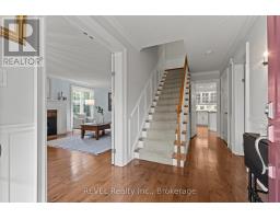 Gracefully situated in the prestigious community of Garrison Village, 36 Confederation Drive offers a rare opportunity to own a refined residence where timeless charm meets modern sophistication. This 4-bedroom, 3-bathroom home features beautifully proportioned, light-filled living spaces with an inviting sense of warmth throughout.The main level showcases wide plank flooring, a stately living room with gas fireplace, formal dining area, and a private den ideal for work or relaxation. The open-concept kitchen and family room overlook the manicured backyard and lead to a covered deck-perfect for seamless indoor-outdoor living.Upstairs, four spacious bedrooms include a serene primary suite with a wood-burning fireplace, walk-in closet, ensuite, and treetop views. A second-floor laundry room adds everyday convenience.The lower level offers a walk-up to the backyard and a wine cellar, a subtle nod to Niagara-on-the-Lake's wine country lifestyle. Surrounded by mature landscaping, this home blends elegance, comfort, and functionality in one of the area's most sought-after neighbourhoods. (id:61594)