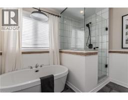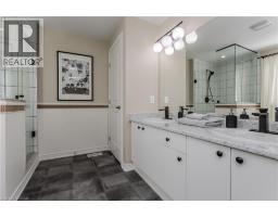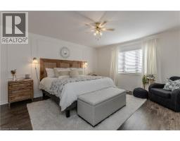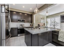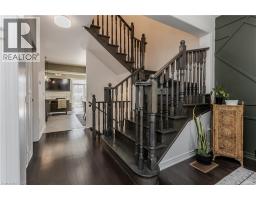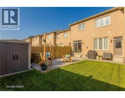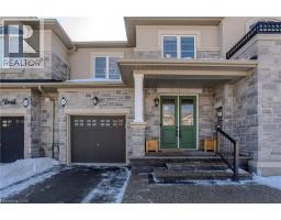 Welcome to this beautifully updated freehold townhome with 1933sf of living space in the heart of the Meadowlands community—an ideal place for families looking for comfort, style, and convenience. Located near a vibrant shopping centre with dining, retail, and a movie theatre, this home also offers easy access to schools, everyday amenities and hwys. Freshly painted throughout, the home feels modern, and move-in ready. The exterior offers welcoming curb appeal with a stone façade, aggregate porch, and an extra wide single driveway. Step inside to an inviting entryway featuring shaker-style board and batten and a stylish feature wall. Hardwood flooring flows throughout the main level, where design and functionality shine. The kitchen features granite countertops, tile backsplash, SS appliances, designer lighting, and elegant gold hardware. Soft-close cabinetry, and an island with built-in storage add convenience, while the breakfast nook with booth seating creates the perfect spot for casual family meals. The living room offers a warm and welcoming gathering space with a gas fireplace, large window, and walkout to the backyard. A built-in coffee bar with tile backsplash and beverage fridge adds a stylish and functional touch for entertaining. Upstairs, laminate flooring runs throughout the bedrooms. The expansive primary suite is a peaceful retreat, highlighted by a picture moulding feature wall, spacious walk-in closet, and spa-inspired 5-piece ensuite with dual sink vanity, freestanding tub, glass shower, and custom trim details. Two additional bedrooms, a 4-piece main bathroom, and convenient bedroom-level laundry complete the upper floor. The fully fenced backyard offers a private outdoor space with an interlock patio, green space for kids and pets to play, a shed for storage, and a BBQ gas line ready for future summer entertaining. A wonderful opportunity to enjoy stylish, low-maintenance living in one of Ancaster’s most desirable family-friendly communities. (id:61594)