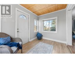 Charming and inviting, this delightful 1-1/2 storey home is nestled in the quaint village of Finch. Enter through the updated kitchen, featuring newer stainless steel appliances, centre island w/ sink, ample storage space and patio doors to a private deck. Off the kitchen, the dining room is a great space for entertaining, flooded with natural light. The front sunroom provides a cozy setting to soak in the sunshine or read a good book, with the living room just beyond, along with updated 4pc bathroom. Enjoy the convenience of main floor primary bedroom, featuring patio doors opening on a deck overlooking the fenced backyard. Upstairs, two additional bedrooms both providing plenty of space. This well-equipped property also features a Generac system providing peace of mind, a detached double garage and a hot tub for year-round enjoyment. A fully fenced yard for your fur babies and summer entertainment along with a convenient shed for extra storage. This home offers the perfect blend of comfort and character - a wonderful place to settle in and enjoy village living! (id:61594)