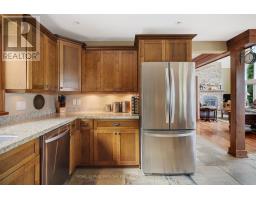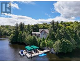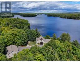 Panoramic views of Lake Manitouwabing take center stage in this beautifully crafted lake house, visible from nearly every room in the house. Whether you're enjoying a morning coffee or hosting family and friends, the ever-changing lake vista is your daily backdrop. Lovingly maintained by the same family for almost 20 years, this stunning property offers 3,533 sqft of finished living space on a private lot at the end of a quiet, municipally maintained cul-de-sac. The lot itself is a rare gem, blending lush forest, bedrock, open green space & a gradual slope to the waterfront, perfect for lakeside enjoyment for all ages. Inside, thoughtful design meets superior craftsmanship, with slate tile, hardwood floors, pine ceilings, wall treatments and mouldings. The great room features soaring ceilings & stone fireplace, making it the perfect gathering place with a breathtaking view. The kitchen is both timeless and functional, boasting solid maple cabinetry, granite countertops & stainless-steel appliances. With 3+2 bedrooms and 3.5 bathrooms, there's space and comfort for the whole family. The fully finished basement features 9-foot ceilings, in-floor heating, wet bar & direct access to the waterfront. Enjoy 151 ft of clean, deep, shoreline and a premium docking system with 2 covered boat slips, lift systems, and approx 18ft of water depth off the dock's end -ideal for swimming and boating. The insulated 1,357 sqft garage & workshop is a hobbyists dream, with a 2-post car lift, roughed-in radiant in-floor heating and upper loft, plus many inclusions. Take a scenic 15 min boat ride to championship golf course, Manitou Ridge, for a round of golf or bite to eat at their beautiful clubhouse & patio. Both McKellar & Parry Sound are a short drive for groceries, local eateries and all other amenities. This truly turnkey offering blends natural beauty, modern convenience + many premium extras into an exceptional year-round waterfront home that is ready for immediate enjoyment! (id:61594)