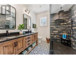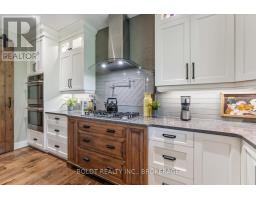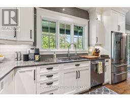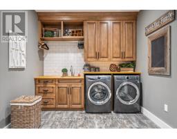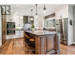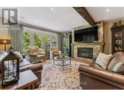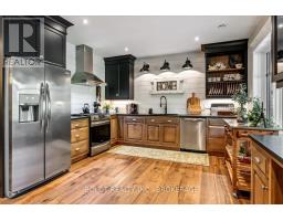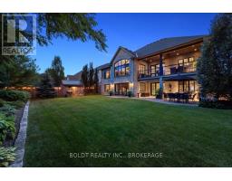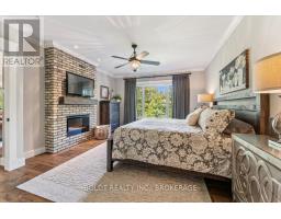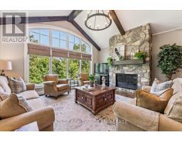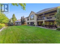 Custom Bungalow in Prestigious Lookout Point.This exceptional home is nestled in one of Fonthill's most desirable neighbourhoods, is truly a masterpiece of thoughtful design and timeless elegance featured in Our Homes Magazine. Lovingly created by the owners and brought to life by Nauta Home Designs, every detail has been carefully curated for luxury, comfort, and functionality. Step into the great room and be immediately captivated by the vaulted shiplap and beamed ceiling, stunning stone gas fireplace, and a wall of windows framing breathtaking views of mature coniferous and deciduous trees changing beautifully with every season.The gourmet kitchen is the heart of the home, featuring a grand island, spacious dining area, and seamless access to a covered porch perfect for entertaining. A walk-in pantry and generous cabinetry provide ample storage while maintaining a clean, upscale look. The primary suite is a peaceful sanctuary with a fireplace, walk-in and double closets, and a spa- like ensuite complete with a large glass shower and luxurious soaker tub, overlooking serene backyard views. The front room, currently used as a parlour, easily converts to a main-floor bedroom with its double closet, and full bathroom just steps away. The spacious main-floor laundry adds everyday ease. As you descend to the fully finished lower level, you're greeted by soaring 9' ceilings and another beautifully appointed great room with stone fireplace and ceiling beams that mirror the upper levels elegance. This level also boasts a full second custom kitchen crafted by the same cabinetmaker, along with a charming dining area framed by a custom brick and stone accent wall evoking the feel of a rustic Italian villa. Garden doors open to a covered porch and large patio area, complete with a gas BBQ line an entertainers dream. Two generous bedrooms and a stylish full bathroom with a double vanity and spacious glass shower complete this level, making it ideal for extended family, guests. (id:61594)