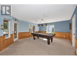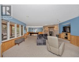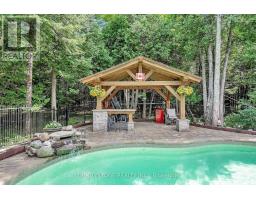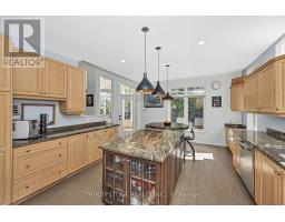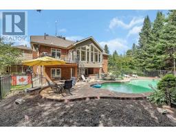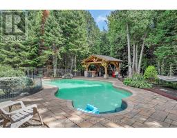 Welcome to this exceptional custom-built bungalow, perfectly nestled on a 2.3 Acre treed lot in a sought-after golf club community! A long, private driveway surrounded by lush landscaping offers ample parking and sets the tone for this inviting property. Step inside to a spacious foyer that opens to a bright and expansive living room, complete with a cozy fireplace and an abundance of natural light. The gourmet kitchen features stainless steel appliances, a breakfast bar, and generous cabinetry, seamlessly blending style and functionality. Adjacent to the kitchen, a sun-filled four-season sunroom with large windows invites you to take in the picturesque views of the backyard. The primary suite offers a walk-in closet and a luxurious 4-piece ensuite with dual sinks and a sleek glass shower. A potential fifth bedroom (or home office), an additional spacious bedroom, and a beautifully designed full bathroom with a freestanding tub and glass shower complete the main floor. A dedicated laundry room adds to the convenience of this level. The fully finished lower level feels like an extension of the main floor, with large windows providing plenty of natural light. Here, you'll find two additional bedrooms, a fitness room, a full 4-piece bathroom, and a walkout to the backyard. The backyard is a true private oasis, designed for relaxation and entertaining. Enjoy the upper-level deck perfect for gatherings, or retreat to the shaded walkout patio below. The stunning inground pool, complete with a waterfall feature, stone patio, and a large gazebo, offers a spa-like experience right at home. Schedule your exclusive showing today and see all this home has to offer! (id:61594)