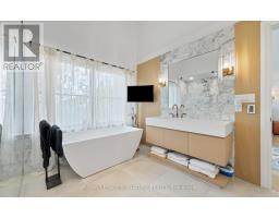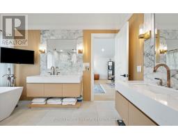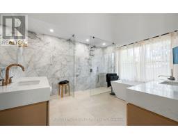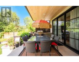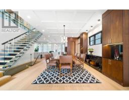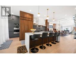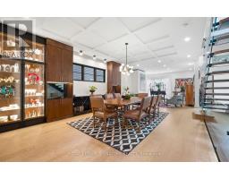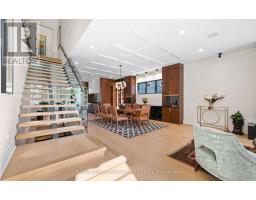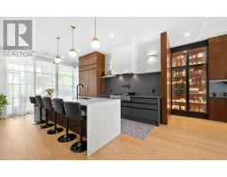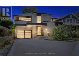 Custom-built Art Deco-inspired home with every detail thoughtfully considered! Offering over 5,700 sq. ft. of living space on a 50 x 150 lot, this residence blends modern elegance with timeless design. Ideally located in the heart of Port Credit Village, steps to Lake Ontario, reputed private and public schools, vibrant festivals, restaurants, and minutes to the Port Credit GO and highways. Inside, striking floating staircases with glass railings, elegant coffered ceilings, and two fireplaces highlight the main floor. A grand foyer with a soaring 19-ft ceiling leads to a sitting room that transitions into a majestic dining area, perfect for hosting. White oak flooring flows throughout. The chef-inspired kitchen features a large quartz waterfall island, Monogram integrated fridge/freezer, JennAir professional grade gas range, double oven, dishwasher, quartz backsplash with pot filler, Sharp microwave drawer, and a butler's pantry with ice maker, sink, and storage add to this gourmet haven. The family room is anchored by a custom fireplace with wood slat detailing and dramatic black surround. A mudroom with custom closets, pet wash station, and stylish powder room complete this level. The open-concept design extends outdoors to a covered dining area with built-in BBQ, overlooking a Japanese-inspired backyard. Upstairs, are four spacious bedrooms, each with ensuite with heated floors; two with custom walk-in closets. The primary suite includes a gas fireplace, expansive closet, walk-out to a private deck, and spa-inspired 5-pc ensuite. A laundry room adds convenience. The lower level offers heated floors, separate entrance, steam shower, wet bar, lounge, and a 800-bottle temperature-controlled wine cellar. Flexible spaces include gym, media, and music rooms; versatile space ideal for work or play. Additional features: heated 5-car driveway, heated garage floor, 2 furnaces, 2 sump pumps, Sonos system, integrated speakers, CCTV surveillance, alarm, Kolbe windows/doors. (id:61594)