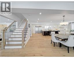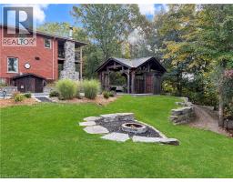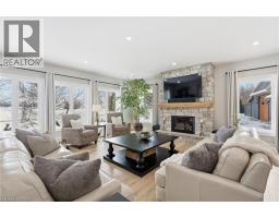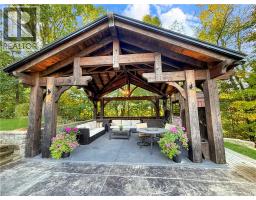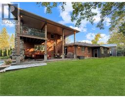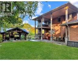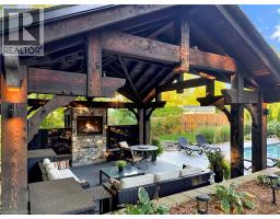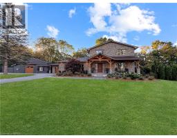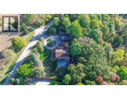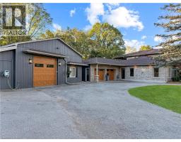 Welcome to 360 Robinson Road — a fully renovated executive home offering over 4,000 sq ft of living space on a 2.6-acre lot, backing onto the protected conservation lands of Apps Mill. This property blends quiet rural living with modern elegance and incredible outdoor amenities, just minutes from Brantford and Hwy 403. Step onto the striking timber front porch and into a bright, open-concept main floor designed for both entertaining and everyday comfort. The spacious layout seamlessly connects the chef’s kitchen, dining area, and great room, all bathed in natural light from expansive windows and glass doors that frame serene views of the pool, forest, and fields beyond. The custom kitchen features quartz countertops, a 10-ft island, built-in appliances, a wine cellar, and a wet bar. The great room’s natural stone gas fireplace adds warmth and sophistication to the space. Additional main floor highlights include a large laundry/mudroom and a private home office with its own gas fireplace and custom built-ins. The primary suite offers a private walkout deck overlooking the backyard oasis. Three additional bedrooms and beautifully updated bathrooms provide ample space for family and guests. The fully finished lower level expands your living options with a home gym, 2- piece bathroom, sauna, and potential for a wet bar or guest suite. Outside, enjoy resort-style living with a covered porch and two-storey woodburning fireplace, look--out deck, massive pavilion, firepit area, and a stunning in-ground saltwater pool. A heated detached shop with an office adds versatility for a home-based business, hobby space, or storage. Extensive renovations include, new windows and front door, full spray foam insulation, updated electrical, , new appliances and pool equipment, upgraded lighting, trim, and flooring This home is a rare opportunity to own a luxurious retreat surrounded by nature where comfort, style, and privacy come together on a premium conservation lot. (id:61594)
