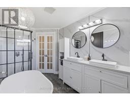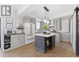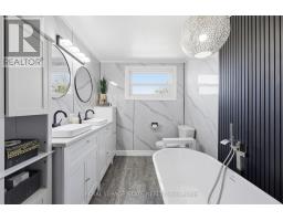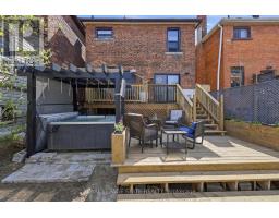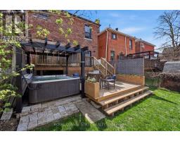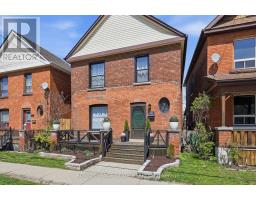 Experience the perfect fusion of 1899 character and modern design in this solid-brick Victorian located in the sought-after Blakeley neighborhood. Fully modernized for ultimate peace of mind, this home boasts newer windows, a 200-amp electrical panel and all-new electrical and plumbing completed in 2024. The interior opens with a striking checkered foyer leading into a sophisticated main floor, anchored by a living room featuring a sleek marble-patterned fireplace surround and elegant matte-black cabinetry. The heart of the home is the chef's kitchen, showcasing premium white appliances, a navy center island with quartz counters and custom cabinetry with stylish rattan inserts. This space flows seamlessly into a dedicated coffee bar and a sun-drenched dining area with sliding door access to the rear deck. Upstairs, the primary retreat offers a boutique atmosphere with custom wall paneling and gold sconce lighting. The spa-inspired bathroom is a true showstopper, featuring a freestanding soaking tub, a massive black-framed glass shower and a double vanity set against a marble-veined feature wall. The outdoor oasis is designed for entertaining, featuring a multi-tier deck that leads to a private hot tub under a modern black pergola, all framed by custom planters and designer privacy fencing. This move-in-ready masterpiece offers a luxury lifestyle and mechanical reliability just steps from Gage Park and Hamilton's best local amenities. (id:61594)