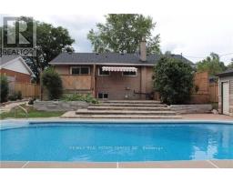 3+2 bedroom, 2 full bathroom bungalow on a 120-ft deep lot, complete with an in-ground pool and an entertainer's backyard oasis. This property is an investor's dream-perfect to move in, rent out, or build your future dream home. Featuring a good size separate kitchen with granite countertops and refinished hardwood floors ('16), the home offers comfort and potential. Two main-floor bedrooms overlook the pool and walk out to private decks-ideal for morning coffee or quiet relaxation. Both decks lead to an expansive 500+ sq. ft. flagstone patio that extends to the pool's edge, creating a serene retreat for gatherings and outdoor living. (id:61594)