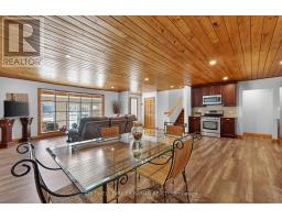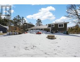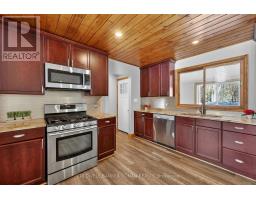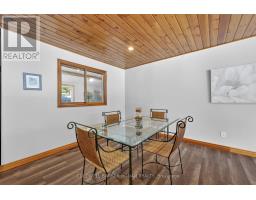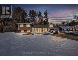 This charming spacious home boasts open concept living room, dining room & kitchen, 3 good sized bedrooms and lovely family room with woodstove. The sun filled sunroom offers serene view of the river. You will find the perfect guest room above the garage with french doors and view of the river. The insulated 2 car garage has access into the home. Recent renovations 2025 incl. new windows, flooring on main & lower level, painted throughout, ceramic floors in sun room & back foyer & fridge, new furnace, A/C and garage insulted w/epoxy floor & garage heated by electric heater.Renovations six years ago incl. new pine tongue & groove ceilings throughout, wiring, insulation, drywall, kitchen & guest room above garage.You will find a good sized dock at waterfront across Santas Village Rd. giving access to the 3 big lakes, Muskoka, Joseph & Rosseau. Min to downtown Bracebridge with all amenities incl. hospital. This property is perfect for entertaining with that lovely peaceful feeling and plenty of outdoor space. Lots of parking.Book your appointment now and make this"Home Sweet Home" (id:61594)