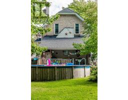 Beautifully maintained and steeped in history, this remarkable century home is believed to be one of the first 14 houses built in Exeter, double bricked by a Scottish mason, and built in 1856. The home exudes timeless Victorian elegance through an array of original and restored features, including wainscoting, 14" baseboard trim, crown molding, front screened doors and exquisite stained-glass windows. The main level offers a versatile bedroom/office with its own private entrance -ideal for in-laws/guests, or a private business/home occupation - conveniently located near a newly constructed 3 piece bath with a tiled shower. A renovated kitchen blends modern function with classic charm, featuring quartz countertops, custom cabinetry, and a large island, while a spacious and bright dining area is highlighted by a gas fireplace and vintage mantle. Original pocket doors transition to a living room accented by a striking stained-glass window and a beautifully refinished hardwood floor. The original front and renovated rear staircases lead to the upper level which offers 3 spacious bedrooms, including a primary with 2 walk-in closets, and two 3 piece bathrooms. Outdoors, relax on a large deck surrounding an above-ground pool(new cleaning system) and a hot tub while quiet evenings can be spent around the fire-pit or enjoying the tranquil fish pond, with ample yard remaining for entertaining or play. Peaceful mornings begin on the covered front or side porch, where the Gingerbread trim has been meticulously restored. A updated shed, garden, a single car garage with a steel roof, front and rear door access and a workbench ensure everyone in the family has space to tinker. Numerous updates completed in 2022 include a sump pump, furnace, central vac sweeper, electrical, roof (2023) and more. This is a rare opportunity to own an updated home where history-inspired design, rich character, and modern comforts come together in perfect harmony. (id:61594)