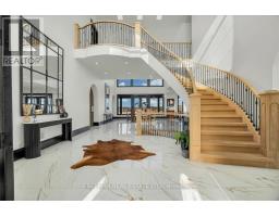 A once-in-a-lifetime opportunity to own one of Durham Region's most remarkable modern country estates. Set on 52 acres of rolling countryside, forested walking trails, & a peaceful pond that glistens in summer, transforming into a skating rink in winter, this architectural masterpiece combines timeless design, privacy, & connection to nature in every direction. Inside, more than 8,500 sq. ft. of finished living space unfolds with soaring ceilings, walls of glass, & sunlit interiors that frame the surrounding landscape like art. Expansive principal rooms flow effortlessly, creating an atmosphere that feels open, refined, & entirely at ease. The gourmet kitchen is a showpiece of form & function with top-tier appliances, designer finishes, & a generous island that anchors gatherings of family & friends. The west-wing primary suite offers a private sanctuary with a dressing room or nursery, large walk-in closet, fitness room, & a spa-inspired ensuite featuring dual vanities, a two-person steam shower, & a freestanding tub perfectly placed to take in serene views of the trees. Upstairs, each bedroom enjoys its own ensuite & walk-in closet, while a self-contained guest wing with a full kitchen, living area & bath provides comfort & independence for guests or extended family. Eight years new, this home was built with lasting quality & modern innovation in mind, featuring geothermal heating, radiant floors, multiple fireplace rough-ins, a pet spa, & a heated three-car garage. The 1,150 sq.ft. covered terrace invites year-round outdoor living & endless sunsets. The lower level adds another 5,700 sq. ft. of potential with exceptionally high ceilings & large windows ready to be finished as a theatre, gym, studio, or wine cellar. Privately situated at the end of a quiet cul-de-sac, yet only minutes from top schools, shops, & community amenities. A rare blend of modern architecture, natural beauty, & quiet sophistication that must be seen to be fully appreciated. (id:61594)