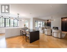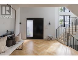 Situated on a premium 75' x 150' lot in the heart of West Oakville, this custom-built residence offers 3,625 square feet of thoughtfully curated living space. Completed in 2020 by Scott Ryan Design Build, the home showcases timeless architectural design, superior craftsmanship, and a floor plan tailored for modern family life. The main floor impresses from the moment you step inside. Herringbone-patterned engineered hardwood floors, soaring ceiling heights, and custom millwork by Misani Custom Design create a warm yet elegant backdrop. A dedicated office at the front of the home provides a quiet workspace, while the formal dining room with adjacent servery is perfect for entertaining. The heart of the home is the expansive kitchen where custom cabinetry, premium appliances, and a large island flow seamlessly into the great room. A thoughtfully designed mudroom with built-ins and side entry adds everyday functionality. Upstairs, the primary suite is a private retreat featuring a spacious, custom-designed walk-in closet and a luxurious ensuite with double vanity, freestanding soaker tub, and oversized shower. The two additional bedrooms include private ensuites and custom built-ins, offering privacy and comfort for family and guests alike. A fully outfitted laundry room finishes off this level. The fully finished lower level offers nearly 1,900 square feet of additional space with radiant in-floor heating and polished concrete floors. A large recreation area, fourth bedroom, full bathroom with steam shower, second laundry and ample storage make this level both versatile and functional. Step outside to a backyard oasis designed for year-round enjoyment. A covered rear porch with glass enclosure acts as a true four-season extension of the home, while the built-in BBQ, hot tub, and landscaped grounds create an idyllic setting for outdoor entertaining. An exceptional offering in West Oakville, this home delivers style, substance, and space in equal measure. (id:61594)