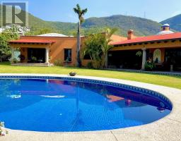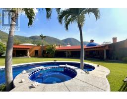 Welcome to Hacienda en la Montaña in the exclusive Club de Golf San Gaspar!Just one hour south of Mexico City, discover the perfect vacation escape or full-time residence only minutes from the City of Eternal Spring, Cuernavaca, famous for its year-round sunny weather, lush landscapes, and vibrant cultural scene the ideal backdrop for this incredible hacienda-style home. Experience timeless Mexican charm in this one-of-a-kind bungalow sitting on an expansive 17,000 sq ft lot and offering over 7,000 sq ft of living space, this home blends traditional elegance with modern comfort, fine craftsmanship, and resort-style amenities. Architectural highlights include Catalan vaulted ceilings, exposed wooden beams, beautiful stonework throughout, and a hand-carved fountain at the main entrance.Offering 4 bedrooms, 6.5 bathrooms, a great room, a formal dining room an office, TV and family rooms, a storage room, and more. the layout is designed for both relaxation and entertaining. The primary bedroom is a private retreat, complete with a walk-in closet, spa-like ensuite, and a serene terrace overlooking the landscaped gardens. The three additional bedrooms each feature their own bathroom and ample closet space. Outdoors, enjoy resort-style living: a sparkling pool, inviting jacuzzi, and breathtaking views of the surrounding mountains and golf course. A massive terrace overlooking the gardens is fully equipped perfect for alfresco dining and entertaining. The property also offers parking for up to 8 vehicles. Nestled within the exclusive San Gaspar gated community, the residence enjoys privacy, security, and direct access to the prestigious San Gaspar Golf Club. Residents of this sought-after enclave appreciate its tranquil atmosphere, manicured grounds, and sweeping views of the valley. Hacienda en la Montaña is more than a house, its a lifestyle of sun, tranquility, and leisure, all within easy reach of Mexico City. (id:61594)