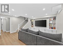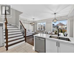 Beautifully maintained semi-detached home, ideally situated in a sought-after, family-oriented neighbourhood in Tottenham. From the moment you arrive, you'll appreciate the charming curb appeal, highlighted by elegant stone walkways leading to a generous covered front porch, perfect for morning coffee or evening relaxation. Step inside to a bright and welcoming foyer featuring a double mirrored closet, a convenient powder room, and soaring 9-foot ceilings that carry throughout the main level. The open-concept layout seamlessly connects the kitchen, dining, and living spaces, designing the area for both everyday living and entertaining. Stylish kitchen with upgraded quartz countertops, stainless steel appliances, and a tasteful mosaic backsplash. The adjoining living and dining areas offer a warm, inviting atmosphere with a walkout to the beautifully landscaped backyard, ideal for hosting or enjoying quiet outdoor moments. This carpet-free home showcases a refined combination of tile and hardwood flooring throughout, along with direct interior access to the spacious garage for added convenience. A striking solid oak staircase with wrought iron pickets leads to the upper level, where you'll find generously sized bedrooms featuring new hardwood floors, oversized closets, large sun-filled windows, and a well-appointed main bathroom. The fully finished basement extends your living space with an impressive recreation room, complete with wall-to-wall built-in cabinetry, laminate flooring, and pot lighting, perfect for movie nights, a playroom, or a home office setup. The laundry and utility room is thoughtfully designed with ample built-in storage. Freshly painted throughout, this home is truly move-in ready. The backyard is a private retreat, featuring a large stone patio, hard-top gazebo, level lawn, storage shed, full privacy fencing, and beautifully curated landscaping, offering the perfect blend of function and outdoor enjoyment. (id:61594)