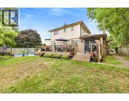 Welcome to this beautifully renovated home, tucked away on a quiet cul-de-sac in the charming town of Paris. Step inside to discover a bright and inviting main level featuring laminate floors throughout creating a warm and modern atmosphere. The thoughtfully designed layout offers two separate living spaces, providing flexibility for both entertaining and everyday family living. The fully renovated kitchen is a true showpiece, showcasing timeless white shaker cabinets, stainless steel appliances, a sleek tile backsplash, and stylish hardware. A floor-to-ceiling pantry ensures ample storage, while the built-in bench seating with underneath storage adds both charm and functionality. The kitchen seamlessly opens to the dining area, with sliding doors leading directly to the large back deck—ideal for indoor and outdoor entertaining. The main-floor family room features an updated gas fireplace with a brick surround, perfect for cozy evenings. Another set of sliding doors provides direct access to the deck, extending your living space outdoors. A large living room with a beautiful bay window completes this level, filling the home with natural light. Upstairs, retreat to the primary suite, complete with a generous walk-in closet with a rough-in for a bathroom inside the closet. Two additional bedrooms provide plenty of space for children, a home office, or overnight guests. A convenient four-piece bathroom serves this level. The backyard is your private oasis, offering a sparkling inground pool, an expansive deck for lounging and entertaining, and a grassy area perfect for pets and children to play. Whether hosting a summer barbecue or enjoying a quiet evening swim, this outdoor space is designed for relaxation and fun. Located in a desirable family-oriented neighbourhood, this home is just minutes from schools, shopping, and all amenities. With its combination of a functional layout and outdoor retreat, this home truly offers the best of comfort and convenience. (id:61594)