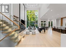 Welcome to 371 Willis Drive, an extraordinary custom-built estate by award-winning architect Keeren Design, ideally located in West Oakville. Inspired by classic French chateau architecture, this home features a timeless white stone exterior, elegant black-framed windows and meticulously landscaped grounds. Spanning 7,500+ SF across three levels, it offers 4+3 bedrooms and 7 bathrooms, each crafted with exceptional detail. The main level features an open-concept layout with 10-ft ceilings and premium finishes. The chef's kitchen is a masterpiece with an oversized island, GEOLUXE porcelain countertops and backsplash, and Thermador built-in appliances including a 6-burner cooktop & 72" refrigerator. It flows seamlessly into the great room, where 20-foot ceilings, a linear gas fireplace, custom built-ins & expansive floor-to-ceiling windows create a grand and inviting atmosphere. A formal dining room, living room, bar, home office, powder room & mudroom complete this level. An oak staircase with glass railings leads to the upper floor, home to a primary suite with a custom walk-in closet & spa-inspired ensuite featuring radiant heated floors, freestanding tub, dual vanities & double rainfall shower. Additional bedrooms each have walk-in closets & private ensuites. The finished lower level adds 3 bedrooms, a full bathroom, modern kitchen, recreation area, media room & office. Elegant design elements are found throughout, including tray ceilings with LED lighting, large aluminum curtain wall skylights, built-in speakers & wide-plank oak flooring. Outdoors, enjoy a private backyard oasis with a covered concrete patio, koi pond, Hydropool swim spa & lush gardens. The front offers a heated granite driveway on reinforced concrete for up to 8 cars, leading to a 3-car garage with concrete flooring. Located near Appleby College, top schools, parks, Lake Ontario & major highways, this residence epitomizes modern luxury living in one of Oakville's most prestigious neighborhoods. (id:61594)