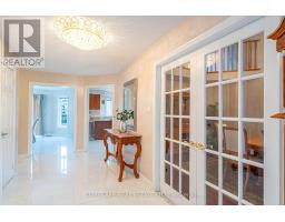 Rarely offered. 3-car garage detached home perfectly situated on a premium corner lot on the cul-de-sac in the highly sought-after Trelawny Estates community. Welcome to an entertainer's delight with whopping over 6500 sq ft. of living space including a fully finished basement with a separate in-law suite. The main level features hardwood floors throughout, a formal living room with coffered ceiling, marble electric fireplace, and large sun-filled windows, a formal dining room with nearly 17ft soaring ceiling, custom chandelier, floor-to-ceiling windows, double French doors, and direct access to the kitchen. The spacious family room offers a marble-surround fireplace, crown moulding, and four large windows overlooking garden. The private main-floor office is ideal for working from home and features double French doors, crown moulding, and two large windows. A stylish 2-piece powder room completes the main level. The gourmet eat-in kitchen is a chef's dream, featuring stainless steel appliances, marble countertops, a large centre island, custom cabinetry with pullouts, w/w pantry, 24"x24" porcelain tiles, and a bright breakfast area with an extended bar and walkout to the garden. The laundry room provides direct access to the deck and garden, a large closet, and oversized washer/dryer space. Upstairs, the primary suite offers hardwood floors, two walk-in closets, and a luxurious spa-like 6-piece ensuite, while three additional bedrooms each feature hardwood floors, double closets, and access to both a Jack & Jill 4-piece and a 5-piece bathroom. The finished basement includes a separate entrance from the garage and exterior, a full kitchen, living/recreation area, game room, bedroom, and 3-piece bath - perfect for extended family or guests with future rental potential. Outside, enjoy a beautifully landscaped private backyard with large tiered deck, mature trees, and lush gardens providing the ideal outdoor retreat while completing exterior with lifetime metal roof. (id:61594)
