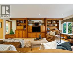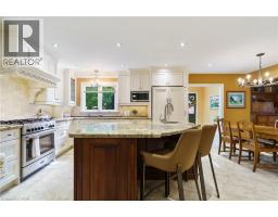 A rare blend of luxury, privacy, and pure lifestyle magic—this exceptional property delivers an experience unlike anything else. Set on a picturesque 0.61-acre, tree-lined lot backing onto protected conservation lands, this pristine all-brick two-storey home offers refined living surrounded by serene, uninterrupted green space. Designed with family living and entertaining in mind, the home offers six spacious bedrooms and five well-appointed bathrooms. The main level features elegant principal rooms, including a formal living and dining area highlighted by a beautiful bay window. The chef-inspired kitchen is a standout, complete with a gas stove, stone countertops, stainless steel appliances, walk-in pantry, and a generous island with bar seating—seamlessly connecting to a bright dinette and an inviting family room anchored by a wood-burning fireplace with a classic brick mantle. Thoughtful touches continue with a sun-filled reading nook, powder room, main floor laundry, and convenient inside access to the garage. Upstairs, a sweeping oak staircase leads to a luxurious primary retreat featuring a walk-in closet and a recently updated spa-like five-piece ensuite with soaker tub and separate glass shower. Additional bedrooms are generously sized, with well-designed Jack-and-Jill bath layouts, ideal for family or guests. The fully finished walk-out basement expands the living space even further, offering a large recreation area, dedicated exercise room with three-piece bath and sauna, and the show-stopping squash court. Outdoors, the property transforms into a private oasis with tiered decking, a stone patio, and beautifully landscaped grounds—all perfectly oriented to capture the tranquility of the protected green space beyond. Plus, a charming log cabin retreat and a separate viewing deck perfectly positioned to take in the sweeping natural backdrop. An extraordinary offering where sophistication, comfort, and a sense of adventure come together effortlessly. (id:61594)