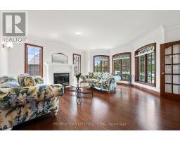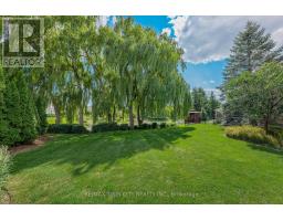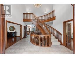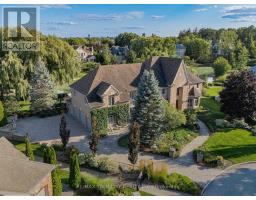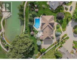 Exquisite Lakefront Estate in Prestigious River Oak Estates-welcome to a rare & extraordinary opportunity-one of the only lakefront estates in the city, offering private access to Emerald Lake. Nestled on 0.53 AC of pristine waterfront, this custom-built legacy residence is a statement of timeless elegance & luxury. Tucked on a private court, this stately home spans over 9,100 SF of living space, w/ 5 beds, 6 baths, & resort-style amenities. Step into the grand foyer, featuring soaring ceilings, sweeping staircase, & classic centre hall plan. The main lvl boasts a living rm w/ gas FP, 10-chair dining rm, & a 2-storey great rm w/ gas FP & serene lake views-ideal for grand events/quiet moments. The chefs kitchen incl. granite counters, centre island, walk-in pantry, & breakfast area w/ patio access, ensuring seamless indoor-outdoor living. A den/office/games rm w/ built-in bar (future main-flr bedrm potential) & 2 powder rms complete this lvl. Dual staircases lead to the upper lvl, where a catwalk provides stunning views of the great rm/entry/lake. The luxurious primary wing features a 5-pce ensuite, dual walk-in closets, a private dressing rm/lounge w/ balcony, office/exercise area, & kitchenette/laundry rm. 3 addl spacious bedrms, each complimented w/ access to a bathrm. A bonus upper loft w/ gas stove adds versatility. The lower lvl features an updated home theatre w/ motion-activated seating & a spacious rec rm. This lvl also offers nanny/in-law suite potential, w/ a bedrm, bathrm, workshop/multi-purpose area (future kitchen), & walk-up access to the garage. The landscaped grounds create a resort-like retreat, featuring in-ground pool, expansive patios, & outdoor kitchen. A covered gazebo/sitting area, surrounded by mature trees & peaceful lake views, offers the perfect place to unwind. Nestled in a private neighbourhood, steps from Kiwanis Park, trails, Grand River, restaurants, shopping, schools, & HWYS, this is a truly iconic, once-in-a-lifetime opportunity. (id:61594)