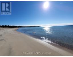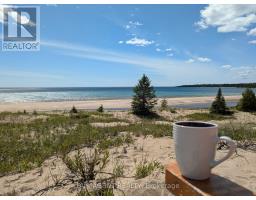 Located on two acres overlooking sand dunes on Manitoulin's tranquil south shore, this off-grid waterfront cottage offers rare privacy and a deep sense of calm. Overlooking the crystal waters of Shrigley Bay, the property is defined by soft, sandy shoreline and breathtaking, uninterrupted views of Lake Huron. The cottage itself is a charming 1.5-storey with a metal roof and vinyl siding, designed for seasonal living with a welcoming, low-maintenance appeal. Inside, you'll find warm wood finishes throughout, a full kitchen with gas stove, and a cozy wood stove in the living area for cooler evenings. The open-concept layout includes two bedrooms, a 3-piece bathroom, and a dining area that feels perfectly in tune with its natural surroundings. A generous deck offers front-row seats to sunsets and starlit skies, while a rustic playhouse adds charm and extra utility. With solar power, a well, and a septic system already in place, this cottage blends simplicity with comfort. Whether you're unwinding on the deck, exploring nearby trails, or kayaking the quiet bay, this retreat is all about reconnecting with nature, with loved ones, and with yourself. It's a rare opportunity to own waterfront on Manitoulin Island with direct access to Lake Hurons raw beauty. (id:61594)