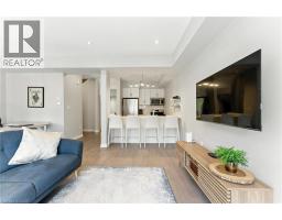 Welcome to this bright and spacious 2-bedroom, 2-bathroom townhome nestled in a quiet and desirable Ancaster neighbourhood. Designed with both comfort and functionality in mind, this home won’t disappoint! The main floor features a versatile multi purpose den, perfect for a home office, workout area, or cozy retreat, along with a large closet for ample storage. Upstairs, discover a stunning open-concept living space bathed in natural light from expansive windows and patio doors leading to a Juliet balcony. Entertain with ease in the upgraded kitchen, complete with stainless steel appliances, quartz countertops, pot lights, a breakfast bar that comfortably seats four, and a seamless flow into the dining area. The living room is equally inviting, featuring wide-plank hardwood floors and brilliant natural light by day, transitioning to warm, ambient lighting at night. The third floor offers an upgraded primary bedroom with a generous walk-in closet and a large window that fills the space with light. A spacious second bedroom also features a walk-in closet, offering plenty of room for guests, family, or additional office space. Convenient bedroom-level laundry adds modern practicality, while the main bathroom impresses with a double vanity and a sleek glass-enclosed shower. Ideally located just minutes from the vibrant Meadowlands shopping and dining district, highway access, and scenic nature trails, ensuring the perfect balance of urban convenience and peaceful surroundings. (id:61594)