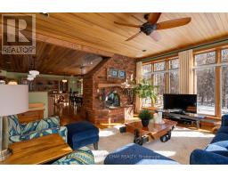 Quiet Luxury on 75 forested Acres in Tay. Long, paved, tree-lined winding driveway leads to this unique custom-built executive home, offering unmatched privacy, high-end finishes, +6,500 sq.ft. of refined living space. Surrounded by a managed hardwood forest with all season trails to enjoy, this property includes 3-car garage, 4-space carport, 24' x 40' heated shop/garage with upper level, 28' x 40' drive shed, pavilion/sugar shack and solar-heated 24 'x 48' inground pool with pool house + change rooms. Expansive eat-in kitchen features 14' island, high-end granite, solid Cherry Wood cabinetry, integrated appliances, French doors to the pool deck, 2-sided fireplace shared with the sunroom. Beautiful American Poplar tongue-and-groove ceilings, handcrafted beams, crown moulding, solid doors, and unique hardware highlight the home's craftsmanship. Elegant living room offers a stunning coffered ceiling and classic charm. Formal dining. Main level primary suite includes luxury 6-pc ensuite - bidet and custom-height fixtures. Bright lower level features large windows, spacious rec room, family room, hot tub room, wine cellar, wood room with exterior chute, abundance of functional storage. Exterior features include stonework highlights with board-and-batten siding, steel roof (2020), decks (2017/18), gutter guards (2021), sprinkler system, mature gardens, automatic driveway lighting, and a 2nd entrance off Vasey Rd. Mechanical highlights: Geo-thermal HVAC (2023), 22 kW generator, central vac rebuilt (2023), water softener, and a 300' well producing ~70 GPM. Tasteful elements of grandeur, many upgrades, unique inclusions! This is a rare opportunity to own a high-end country estate offering privacy, craftsmanship, and quiet luxury on a grand scale. Peace and tranquility can be yours to enjoy, just 10 mins from Georgian Bay - with easy access to key amenities - commuter routes, shopping, services, entertainment and stunning four season recreation this community offers! (id:61594)