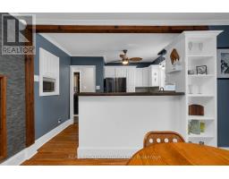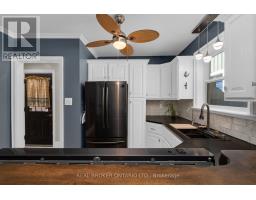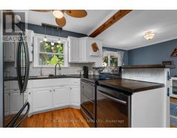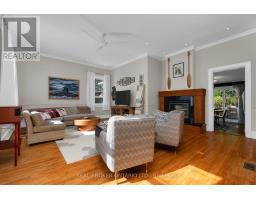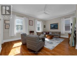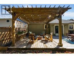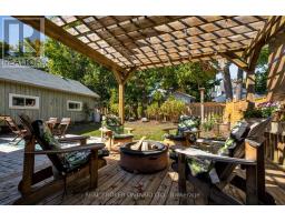 Welcome to this cozy three bedroom charmer with curb appeal private yard and soaring ceilings. Take the flag stone walkway from the long paved driveway through perennials, gardens and nature to your charming covered front porch. Step inside to the immense living space with soaring ceilings, crown moulding, pot lights, sleek hardwood flooring and romantic double sided gas fireplace with granite hearth. The dining space is sun drenched by the sliding doors to the fully fenced yard (right side 2025) where you, guests and your family can enjoy the large deck, pergola and nature. A detached garage is a bonus with 40-amp pony panel which is also drywalled with plenty of extra storage for all of your toys, kayaks and paddle boards (after all you are only 3 minutes to the lake). Back inside the kitchen is functional, adorable and features updated black stainless appliances and a tiled backsplash. A main floor primary bedroom also benefits from the huge ceilings shared in the living space as well as it has hardwood flooring a den perfect for a gym or home office and custom built in wardrobe and organizer with pull out drawers. Another bedroom and updated bathroom with floating vanity complete this level. Downstairs slate flooring adorns the third bedroom perfect for your teenager or visiting family members (or use it as another rec space). There is also a large 3-piece bathroom and an updated laundry room (2024). The house exterior was painted in 2025 and gas meter changed 2025. You are only 1 minute to the Hwy, 2 minutes to the library, 3 minutes to downtown, 3 minutes to a multitude of box stores for all of your shopping needs and walking distance to a handful of schools. Welcome home! (id:61594)