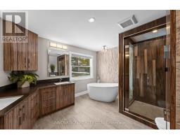 This magnificent, breathtaking home is located in the sought-after community of Kanata Lakes and offers over 5,612 sqft of total living space. A rare find, this residence features 5 bdrms above grade, 5 bath, set on a premium lot with a 10-ft elevated backyard. Stunning finishes & superior craftsmanship are evident throughout, with no detail overlooked. Striking curb appeal includes a 3-car garage(parks 9), breathtaking landscaping, concrete flower beds filled with perennials, and an interlock walkway leading to a large covered front porch. The grand foyer showcases a custom staircase with granite treads, ash handrails and newel posts, tempered glass balustrade, and elegant fluted wall panels.Bright & open throughout, the home features neutral designer tones, Apricot wood-grain ceramic flooring, expansive windows. The main level includes a front-facing den/office, integrated ceiling speakers, and a stunning chef's kitchen with custom cabinetry, quartz countertops, oversized island with vegetable sink, and a separate butler's pantry that you will love. The family room offers a gas fireplace with feature wall, while the dining area captures serene backyard views.The primary retreat features walk-out access to a glass balcony, walk-in closet, and luxurious 5-piece ensuite. Generously sized bedrooms, second-floor laundry with custom storage, and a private third-level loft+bdrm+ensuite- ideal for teens or in-laws complete the upper levels.The fully finished lower level includes a large rec room, large gym with mirrors, bathroom, and ample storage. The backyard OASIS is perfect for entertaining, featuring a patio, built in BBQ station incl BBQ, mature trees, stained concrete patio and walkway. Roof 2024, Skylight 2025, Windows 2017, Siding 2018, Furnace/AC 2016, Attic insulation 2025, tri-Generlink generator complete+storage, 200amp. Ideally located near trails, parks, shopping. this exceptional home offers luxury living at its finest. (id:61594)