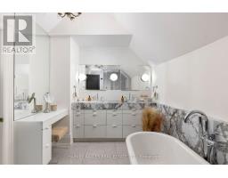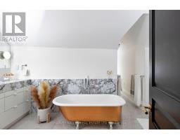 Ultra-luxurious turnkey detached Roncesvalles home fully reimagined w/ a complete, high-end reno that seamlessly blends timeless elegance with modern sophistication. Offering 4 bdrms, 4 baths & approx 3200sqft of exquisitely finished living space, this residence showcases exceptional craftsmanship & designer finishes throughout. The main flr features a spectacular open-concept layout w/ soaring ceilings, abundant natural light & refined architectural details incl. rich oak flrs, custom plaster mouldings, marble-surround gas f/p, ceiling medallions & rosette accents. The showpiece chef's kitchen is nothing short of breathtaking, appointed w/ rare Italian Paonazzo marble, bespoke cabinetry & premium finishes, flowing into a spacious fam rm w/ seamless w/o to a private backyard oasis--perfect for elevated indoor/outdoor living & upscale entertaining. Set on an extraordinary 156-ft deep lot, the backyard is a serene, romantic retreat featuring a custom wrought-iron gazebo ideal for elegant outdoor dining & unforgettable gatherings. The primary suite is a true sanctuary, boasting French doors to a Juliet balcony (future deck potential), a custom W/I closet & a spa-inspired ensuite wrapped in marble w/ a vintage cast iron soaker tub w/ artisanal copper & chrome detailing. The 2nd flr offers 3 addl bdrms, 2 w/ ensuite bathrooms, one used as an oversized office w/ bay window seating w. access to hallway bathroom. The lower lvl is designed for indulgence w/ a custom wet bar, glassed in wine cellar, TV lounge w/ flp, music rm & ample storage. Rare 2-car garage + 1 add'l parking, Located in the heart of vibrant Roncesvalles, steps to top restaurants, cafés, boutiques schools, transit, High Park & the lake, w/ easy access to TTC, hwys & downtown-an exceptional offering of refined luxury living, crafted for the most discerning buyer seeking comfort prestige, and an unparalleled lifestyle in a premier west-end neighbourhood, combining elegance, privacy and sophistication. (id:61594)