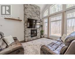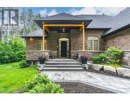LUXURY BUNGALOFT ON A PRIVATE 1-ACRE WOODED LOT IN PRESTIGIOUS PINEVIEW ESTATES! Arrive home to a residence that turns heads, where upscale design, natural beauty, and sheer presence come together spectacularly at 38 Windermere Circle! Nestled in the coveted Pineview Estates on a lush, forest-wrapped 1-acre lot, this luxurious bungaloft makes a bold statement with its brick and stone exterior, soaring rooflines, covered porch, meticulously landscaped grounds, and an attached heated 3-car garage. Step inside to over 2,300 sq ft of elegant living space featuring 9 ft ceilings, neutral tones, a jaw-dropping great room with 12 ft ceilings, a floor-to-ceiling stone fireplace, and expansive windows framing the surrounding trees. The chef-inspired custom kitchen is a showstopper with quartz countertops, a contrasting centre island with breakfast bar, high-end stainless steel appliances including a gas range with a decorative range hood, built-in Bosch coffee system, and a side-by-side refrigeration/freezer set. The dining area is ideal for gathering and features a walkout to the deck, offering a seamless transition to outdoor entertaining. From the elevated deck, stairs lead down to a beautifully designed backyard, where a spacious stone patio is framed by armour stones and bordered by manicured garden beds. Three spacious bedrooms include a primary with a walk-in closet and lavish 6-pc ensuite. The main floor laundry room is equipped with a laundry sink and provides access to the garage, while the spacious upper loft offers flexible potential as a media room, home office, or playroom. An unfinished basement with high ceilings, look-out windows, and a separate entrance provides potential for future living space or multi-generational use. With upgrades like central vac, ERV/HRV system, air exchanger, and automatic garage door remotes, this is a home built for lasting comfort, elevated living, and an exceptional lifestyle in one of the area's most exclusive communities! (id:61594)