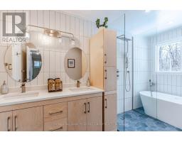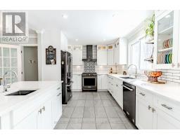 RAISED BUNGALOW ON A 100 X 152 FT LOT WITH A WOODED BACKDROP, IN-LAW POTENTIAL & STUNNING RENOVATIONS! If your wish list starts with privacy, and walking distance to the water, this address checks the boxes before you even step through the front door. Set back from the road with a mature treed backdrop, this classic brick raised bungalow with black shutters and double front doors delivers instant curb appeal plus parking for 8, making everyday life and family get-togethers easy. Walking distance to the shoreline keeps lake days spontaneous, golf is minutes away, and Friday Harbour is a quick 5-minute drive for marina vibes, dining, shops, fitness options, and year-round events, with Barrie under 10 minutes for big-box errands, restaurants, coffee shops, and commuter-friendly transit. The remodelled kitchen showcases quartz countertops, an oversized island with a prep sink, a dual-basin main sink, dark stainless steel appliances including a gas range, shaker cabinetry with select glass fronts, subway tile backsplash, and pot lights, flowing into warm main-level living spaces with hardwood flooring, crown moulding, a French door, and refreshed paint. A spacious primary bedroom offers dual closets and semi-ensuite access to a remodelled 5-piece bathroom with a dual quartz-topped vanity, a freestanding soaker tub, a frameless glass walk-in shower with a niche, and hexagon tile flooring. Downstairs, the finished lower level adds serious flexibility with multiple walkouts, a large rec room, a separate family room with a fireplace, a fourth bedroom, a powder room, and in-law capability for extended family or guests who appreciate their own space. Outdoor space shines with a spacious deck and interlock patio, while the water softener and water purifier pair with an updated furnace and A/C to support everyday comfort behind the scenes. (id:61594)