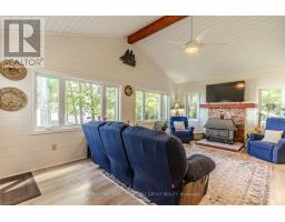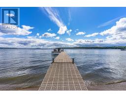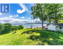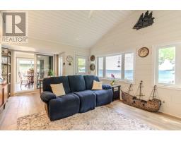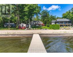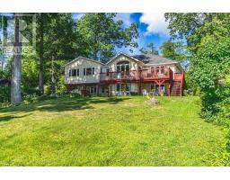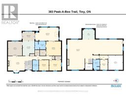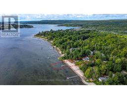 LUXURIOUS GEORGIAN BAY ESTATE WITH 83 FT OF SANDY SHORELINE, SECOND COTTAGE, DETACHED GARAGE & ALMOST HALF AN ACRE! 83 feet of Georgian Bay frontage with eastern exposure presents a private sandy beach with gradual entry, clear waters, and sunrise views that define the waterfront lifestyle. Set on nearly half an acre with a large back deck, the property is further enhanced by an expansive L-shaped dock with a bump-out that extends into the bay, offering an impressive setting for entertaining, lounging, and docking motorcraft. Located on a coveted cul-de-sac along sought-after Peek-A-Boo Trail and just steps from Tee Pee Point Park, the property delivers exclusivity and tranquillity while remaining approximately 10 minutes to local essentials and a short drive to Penetanguishene and Midland for expanded amenities. The primary residence introduces itself with a stately front entry, covered porch, manicured landscaping, and a detached two-car garage with six-car driveway parking. The kitchen is appointed with rich wood cabinetry topped with crown, granite counters, stainless steel appliances, and a built-in desk area. The living room features a bay window, crown moulding, fireplace, and French doors, while the spectacular sunroom boasts soaring ceilings, shiplap accents, pot lights, a dramatic fireplace, and a walkout. The primary bedroom highlights its own walkout to the sunroom, a walk-in closet, and a spa-like 6-piece ensuite. Extending the living space, the finished walkout basement showcases a massive rec room with a third fireplace, pot lights, and room for a pool table, along with a fourth bedroom and full bath, with the entire level opening directly to the yard and waterfront. A versatile second cottage with two bedrooms, a bathroom, a kitchen and a living area, and a private deck enhances the property's functionality for family and guests, while main floor laundry, in-floor radiant heating, central vac, and ERV/HRV systems add to the overall comfort. (id:61594)