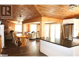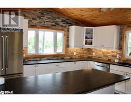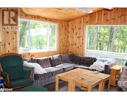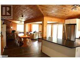 Welcome to this stunning cottage nestled on the shores of Kasshabog Lake. This beautifully appointed island property offers the perfect blend of modern comforts and rustic charm. Bathed in natural light, the open concept sleek freshly updated kitchen, plus living/dining areas create a warm and inviting atmosphere, perfect for entertaining or relaxing. Enjoy a morning coffee or family meal on the deck overlooking the lake. 3 cozy bedrooms offer peace and relaxation after a day out on the water or enjoying the landscaped yard. The sand entry to the lake makes this a great options for those with little ones or grabbing a chair and sitting with your toes in the sand. Outdoor enthusiasts will delight in the abundance of water activities to partake on this family friendly lake. Enjoy the privacy on this half acre waterfront parcel just a short boat ride from the mainland. (id:61594)
