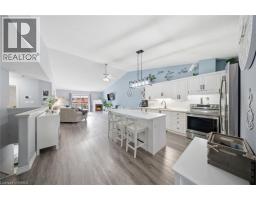 Welcome to Easy , stylish living in Brantford’s desirable north end. One of Brantfords most convenient and central locations, easy access to transit, major shopping mall, grocery and everyday amenities as well as quick connection to highway 403 for those commuters. This beautifully updated bungalow townhouse condo offers an open, airy feel with soaring cathedral-style ceilings freshly painted thru out , that create a bright and spacious atmosphere from the moment you walk in. Its a must view home , Open concept main fl layout with corner gas fireplace and sliding doors to sunny deck and quiet enjoyment from your main floor. The heart of the home is the stunning white kitchen, featuring new countertops and light fixture with a brand new 6-foot island with quartz top—perfect for entertaining, casual dining, or morning coffee. New luxury vinyl flooring flows seamlessly throughout the main level, combining durability with a clean, contemporary look. Enjoy the convenience of main floor laundry and comfortable one-level living, while still having the bonus of a fully finished lower level. Downstairs, you’ll find a generous rec room space along with a third bedroom—ideal for guests, hobbies, a home office, or additional living space as well as 3 piece updated bath and tons of storage space in utility room. Both bathrooms have been tastefully updated with new fixtures , counter tops, adding a fresh, modern touch throughout the home. Many newer features include All main floor luxury vinyl flooring 2021, freshly painted , kitchen island and stools 2024, kitchen appliances new 2024,kitchen counter and backsplash 2024, 2 baths counters and fixtures 2025, central air unit 2025, gas line for BBQ on deck Whether you’re a senior looking to simplify or a busy professional seeking low-maintenance living, this home offers the perfect blend of comfort, function, and lifestyle. Move in, relax, and enjoy everything this turnkey property has to offer. (id:61594)