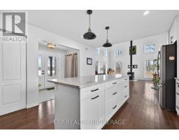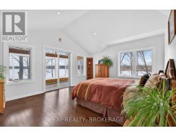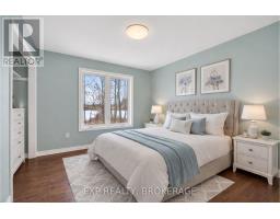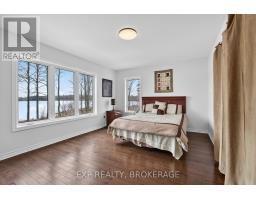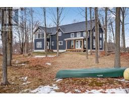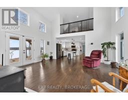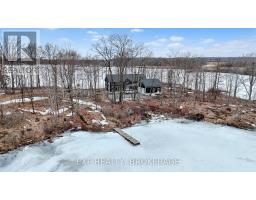 Welcome to 3855 Hideaway Lane, a rare waterfront sanctuary where privacy, luxury, and nature converge. Set on a breathtaking 5.8-acre peninsula with 2,798.4 feet of shoreline along the historic Rideau Canal at Dog Lake, this one-of-a-kind property offers uninterrupted 360-degree water views and complete seclusion just 25 minutes from Kingston. Arrive via a private laneway surrounded by water on both sides, leading to a stunning custom-built, 2-storey home finished in Marine Dusk vinyl siding. Built just 4 years ago, this meticulously designed residence features 2,100 sq/ft of living space and showcases soaring 17-foot ceilings in the spectacular great room, where floor-to-ceiling windows frame panoramic lake views and create an unforgettable living experience. The open-concept main floor is anchored by a gourmet kitchen with a granite island, seamlessly flowing into the expansive living and dining areas. Acentrally located WETT-certified woodstove adds warmth and ambiance, complemented by an energy-efficient heat pump/AC system. Premium finishes include Gunsmoke oak hardwood flooring,triple-glazed windows, and an ICF foundation with a dry, heated crawl space for additional storage. The home offers 3 bedrooms, including two on the main level and a private upper-level primary retreat featuring a walk-in closet, ensuite bath, and an enclosed sunroom overlooking the water. One main-floor bedroom, with its own entrance near the shoreline, presents excellent potential for an in-law suite or boutique B&B accommodation. Upstairs, a spacious media loft overlooks the Great Room below, enhancing the home's open, airy design. Additional highlights include an attached double-car garage with unfinished loft space, a 30-foot dock (year-round), and a forested landscape. A fully renovated waterfront bunkie set on a granite outcrop overlooking Milburn Bay. Complete with electricity, a woodstove, running water, and acomposting toilet, it is currently a successful Airbnb. (id:61594)