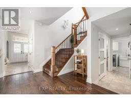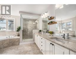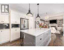 A beauty in Blackstone! This 4-bed, 3.5-bath Monarch Homes home showcases thousands in upgrades and an incredible backyard oasis designed for entertaining. Enjoy your own private retreat featuring a heated saltwater pool with a waterfall, interlock patio, and PVC fencing. The pool is equipped with a gas heater, summer and winter covers, and an additional set of filters for easy maintenance. A double interlock walkway and elegant front doors with stained glass and transom windows create an impressive first impression. Inside, the main level and upper hallway have been freshly painted by a professional. Hardwood flooring flows throughout the main level, complemented by tile in the foyer, kitchen, and bathrooms, along with a striking hardwood staircase with oak rails and iron spindles. The bright, open-concept living and dining areas feature large windows, recessed lighting, a tray ceiling, and a statement chandelier.The chef-inspired kitchen offers abundant cabinetry, subway tile backsplash, quartz countertops, a large island, modern hood fan, and stainless steel appliances. The family room overlooks the backyard, while a separate den provides the perfect home office or quiet workspace.Upstairs, the spacious primary suite features a walk-in closet and a luxurious ensuite with quartz countertops, dual sinks, a glass shower, and a relaxing soaker tub. Three additional bedrooms complete the level-two with walk-in closets, one with its own private ensuite, and two sharing a convenient Jack-and-Jill bathroom.The beautifully finished basement adds exceptional additional living space, perfect for a recreation room, home gym, or media area. With central vacuum, meticulous maintenance, and high-end finishes throughout, this exceptional home offers style, comfort, and functionality in one of Blackstone's most desirable communities. Truly move-in ready! (id:61594)