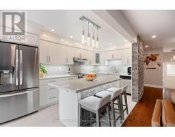 This immaculately renovated & well-maintained Semi, 3-bed, 3-bath home w/ 2055sqft of total living space is located in the family-friendly Churchill Meadows neighbourhood & is loaded w/ upgrades. Main floor showcases a bright open concept w/ stone feature wall ('19), hardwood flooring, & Chef's kitchen ('19). The kitchen is thoughtfully designed w/ large island, custom soft close cabinetry, under counter lighting, quartz counters & premium stainless-steel appliances. Smooth ceilings, pot lights & elegant light fixtures create a warm & inviting ambiance. A 2-piece powder room & entrance to the single car garage provide everyday convenience. Move on upstairs & find an expansive primary bedroom w/ large walk-in closet & ensuite, plus 2 additional generously sized bedrooms. The recently renovated ('22) main bathroom features beautiful floor to ceiling tile, large stand-in shower w/ Hansgrohe fixtures, & premium vanity. When looking to entertain or find extra space for the kids, the finished basement ('17) is the place to be! It also features plenty of storage, a laundry room w/ new washer & dryer ('25) & the Cadillac of furnaces - a Lennox Elite furnace ('25). Pride of ownership truly shines even before you enter the home. Meticulous landscaping is highlighted by a concrete driveway extension, allowing for extra space for your family to park or play, followed up w/ a concrete path leading to the expertly designed backyard entertainment pad ('21). Gardening enthusiasts will be right at home in this space. There is plenty of room to grow anything your heart desires, & a new custom shed ('22) adds a perfect space to store your toys or set up for a hobby room! This home is just steps from, Rec Centre, public transit, great schools, parks, & shopping. Minutes to Erin Mills Town Centre, Credit Valley Hospital, HWY 403 & 407, & places of worship. This home combines thoughtfully detailed space, convenience, & an unbeatable location. A place to love & make memories for decades. (id:61594)