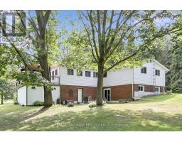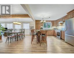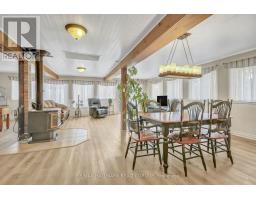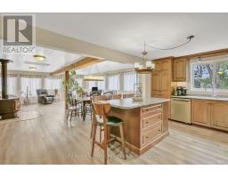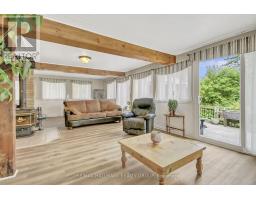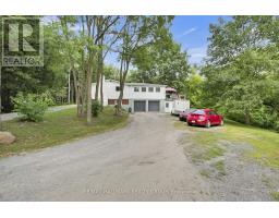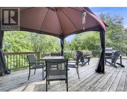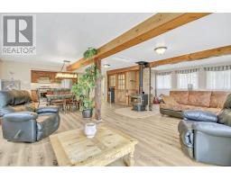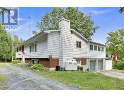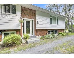 Welcome to your private oasis in Clarence-Rockland! Nestled on 26.73 acres and set 500 feet from the road, this 3-bedroom, 2.5-bath High Ranch home is perfect for nature lovers seeking peace and privacy. The open-concept main level is filled with natural light and features a spacious living and dining area with a cozy wood stove. The kitchen boasts stainless steel appliances, a tile backsplash, ample counter and cupboard space, a center island, and a large walk-in pantry. Step outside onto the expansive 29' x 14' deck with tranquil views of the private, tree-lined property. Durable laminate and tile flooring flow throughout. The main floor includes a quiet bedroom wing with a generous primary suite and walk-in closet, two additional bedrooms, a full luxury bath, and a powder room. The fully finished lower level adds a family room, 3-piece bath, a rec room with a second wood stove, plenty of storage, and a walkout to the back patio. The laundry/mudroom offers direct access to the oversized 2-car garage. Outdoors, you'll find a two-storey aluminum barn (approx. 65' x 28')-ideal for a hobby farm. A wood shed sits below the deck, and the property is surrounded by mature trees, including apple and pear. Enjoy a fish-filled creek, no rear neighbours, and serene country living just a short commute to Ottawa. Zoned RU1-this property blends natural beauty with everyday comfort. (id:61594)