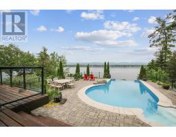 This gorgeous 5 bedroom, 3 bathroom waterfront home is truly one of a kind. Enter into the foyer and immediately be taken away by the breath taking views of the hills across the stunning waterfront. The foyer opens up to the spectacular living room featuring a fireplace, 2 skylights and 2 large sliding doors leading out to the screened in deck. This grand living room is open to the eat-in kitchen featuring stainless steel appliance, built in wine racks, ample cupboard space and an addition sliding door leading out to the massive deck. On the main level you will also find the incredibly spacious primary bedroom featuring a walk-in closet, 4 piece ensuite, fireplace and additional sliding doors leading out to the deck. This is the perfect couples retreat in your very own home. On the lower level you will find a centrally built wet bar and home theatre, perfect for entertaining, along with addition sitting space, 4 bright bedrooms and a 6 piece bathroom. The 1800 sqft heated garage with high ceilings offers ample storage space and opportunity for car lifts. The most notable part of this one of a kind home is by far the outdoor space. Not only is the screened in deck, massive uncovered deck, and large yard a wonderful space to enjoy all to yourselves or host guests, but the in-ground infinity pool and sandy shore line is every outdoor lovers dream. Enjoy a day of boating on the Ottawa River from your very own private dock. The spectacular waterfront offers prime views of sunrise and sunset all summer long and year round sunsets that are truly remarkable. No detail was missed inside or out in the design of this stunning property. NEW IN 2025 : NEW ULTRA VOILET SYSTEM, REVERSE OSMOSIS SYSTEM, FRIDGE, MICROWAVE, WASHER, DISHWASHER,HEAT PUMPS, POOL COMPUTER, POWDER ROOM TOILET, 3 WATER SOFTENERS , new 17k BOILER & JET PUMP - ALL NEW THIS YEAR. (id:61594)