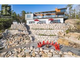 Top 5 Reasons You Will Love This Home: 1) From the striking polished concrete floors with radiant in-floor heating to the gourmet chefs kitchen and sleek high-end finishes, every inch of this home has been thoughtfully designed with contemporary comfort in mind, soak in the sweeping, unobstructed views that create the perfect backdrop for everyday living 2) With a main level primary suite for ultimate convenience, plus four additional guest bedrooms, a cozy loft, and a walkout recreation room that leads right to the waters edge, there's no shortage of room for family, friends, and creating unforgettable memories 3) Professionally landscaped to perfection, this property boasts a stunning granite patio, built-in water feature, serene sauna, and a charming screened-in Muskoka porch, with thoughtfully hardscaped stone paths guiding you through lush greenery and peaceful gathering spots 4) Set on a highly sought-after lot with an impressive 180' of pristine Gloucester Pool frontage, enjoy a sandy beach area, a private dock, and a two-slip boathouse, ideal for boating enthusiasts, while the heated, insulated, and waterproofed garage is a standout, professionally finished by Garage Living with custom shelving and durable PVC paneling 5) With true LTE high-speed internet and access via a private, four-season road, this home spans 4,037 finished square feet and presents the ultimate four-season escape or full-time luxury residence. 4,037 above grade sq.ft. (id:61594)