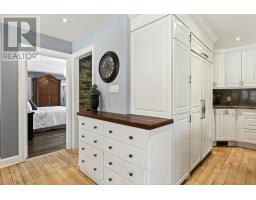 Tucked away at end of a quiet street in Old Ancaster, this extensively renovated bungalow with a thoughtful addition blends rustic warmth with refined, high-end living. Surrounded by mature trees and set on a private, fenced lot, this home feels like a hidden retreat - peaceful, grounded, and crafted with intention. Inside, natural materials and exceptional craftsmanship take centre stage. Solid wood flooring flows throughout, complemented by custom solid wood cabinetry adding richness and texture. The heart of the home is a beautifully appointed kitchen featuring Wolf and Sub-Zero appliances -designed for both everyday living and entertaining. The main level offers three bedrooms, vaulted great room and a convenient mudroom. Downstairs, the ambiance shifts into something truly special. With the warmth of a Tulikivi soapstone wood-burning fireplace imported from Finland, the space feels like a cozy cabin in the woods. The lower level also adds two additional bedrooms (converted from a gym) and a full workshop provides incredible utility and can easily be converted back into a garage if desired - offering flexibility to suit your lifestyle. Step outside to your own private oasis. Low-maintenance IPE decking anchors the backyard while the swim spa invites year-round relaxation and fitness; all set against a backdrop of trees and total privacy. Put yourself within walking distance to restaurants and shops, the Ancaster tennis club, the rail trail & Bruce Trail, and much more! (id:61594)