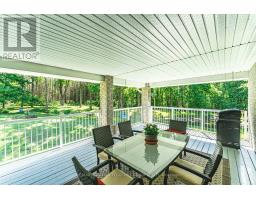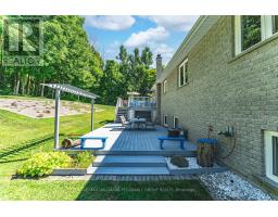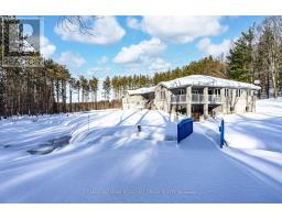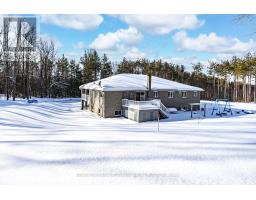 25 ACRE QUALITY-BUILT ESTATE WITH OVER 4,600 SQ FT, WALKOUT BASEMENT, TRIPLE GARAGE & EXTENSIVE OUTDOOR LIVING! Set on 25 acres with forest, gardens, a pond with a deck, and a flowing stream, this custom-built brick bungalow feels like the place you didn't know you were searching for. Private trails stretch across the property for walking, biking, snowshoeing, and cross-country skiing, while outdoor adventure continues nearby with access to golf courses, snowmobile trails, boat launches, beaches, Horseshoe Valley, Vetta Nordic Spa, and Bass Lake Provincial Park. Outdoor living takes centre stage with two large covered porches, a sun-filled entertaining deck, a fire pit, and multiple open spaces designed for use and enjoyment year-round, complemented by a triple-car garage and an oversized driveway offering generous room for vehicles and toys. Built with quality craftsmanship, strong energy efficiency, and clear pride of ownership, the home offers over 4,600 sq ft of finished living space across a thoughtful layout. A dramatic wall of windows anchors the living room with pond and garden views, flowing into a formal dining room and a bright family room with a covered porch walkout. The kitchen includes quartz countertops, pantry storage, stainless steel appliances, and a walkout to the deck, while a separate den provides flexible space for a home office, studio, or media room. When it's time to unwind, the primary suite offers a walk-in closet and private 3-piece ensuite, with two additional bedrooms served by a 4-piece main bath. The walkout lower level with in-law potential adds a 4th bedroom, a den with patio access, a spacious recreation room with a wood stove, workshop and gym areas, a 3-piece bath, and cold storage. Additional highlights include a hot tub, pool table, owned water heater, water purification system, shingles updated in 2014, and enhanced attic insulation. This is the kind of #HomeToStay that changes what you think you're looking for. (id:61594)