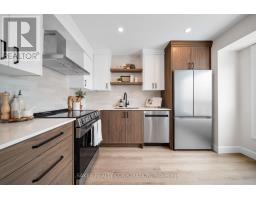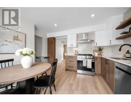 WOW is right! 1990 Wavell presents a beautifully executed renovation along with an attached garage, two exclusive parking spaces, ample visitor parking steps away and a walkout basement, leading to your own private back patio. Step inside and you'll immediately appreciate the brand-new LVP flooring, updated trim and stylish beige interior doors; that set the tone for the home's warm, modern aesthetic. The main level is anchored by a stunning two-tone kitchen; featuring white and walnut cabinetry, open wood shelving, a beveled subway tile backsplash and all-new stainless-steel appliances. The living room centres around a cozy gas fireplace finished in elegant beveled MDF; an eye-catching focal point that elevates the space. This level also includes a versatile laundry/powder room combo, complete with custom upper cabinetry for added storage and everyday convenience. Upstairs, the third level offers three bedrooms and a full 4-piece bathroom with a shower/tub combo and a modern wood-grain vanity. The spacious primary bedroom provides two closets. Beyond the premium finishes, all major updates have already been completed (furnace, AC and 100 amp breaker panel), offering buyers peace of mind for years to come. There is no other renovated condo like this available in East London. Don't miss your chance to view this exceptional home! (id:61594)