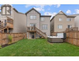 Step into comfort and style in this beautifully upgraded 4-bedroom, 3-bath detached home in Fergus. Backing onto the peaceful green space of Forfar Park and just steps from the Elora Cataract Trail, this home offers the perfect blend of nature and modern living.The main floor features an open-concept layout with 9-foot ceilings, rich hardwood flooring, oak staircase and striking custom woodwork throughout. The chefs kitchen stands out with sleek tuxedo-style cabinetry, premium finishes, Wolf Gas Stove, and a functional design ideal for entertaining. Gather in the family room around the cozy gas fireplace, framed by custom built-in's and flooded with natural light. Upstairs, four generously sized bedrooms provide ample closet space and plush broadloom, with the primary suite offering a luxurious 5-piece ensuite with soaker tub, double vanity, and walk-in shower. The unfinished basement offers endless potential - whether you're dreaming of a home gym, recreation space, or in-law suite, it's a blank canvas ready for your personal touch. Step outside to your own backyard retreat, featuring a hot tub, children's play area, and lush green space with no rear neighbours! (id:61594)