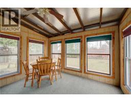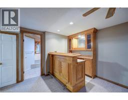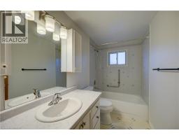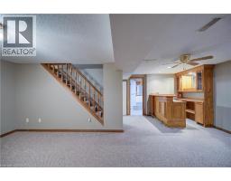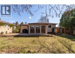 One story bungalow with attached garage backing onto Green space. Great north end location, with excellent highway 403 access as well as a quick drive to all of the north ends amenities. Main floor just painted throughout, boasts bright living room, eat-in kitchen with new counter tops, 3 bedrooms with fresh baseboards , 4 piece bathroom, as well as a sunroom. Lower level has large open family room with wet bar and gas fireplace, 3 piece bathroom with large soaker jet tub, and a potential fourth bedroom as well as utility room with laundry. Fully fenced rear yard with deck off of sunroom. Eavestroughs are equipped with gutter guards for added convenience and low-maintenance exterior care. (id:61594)