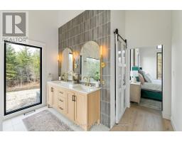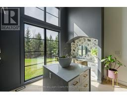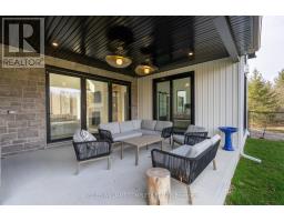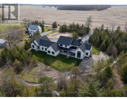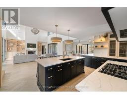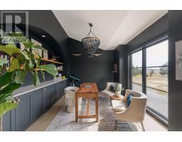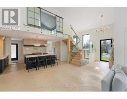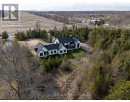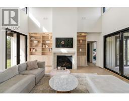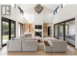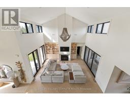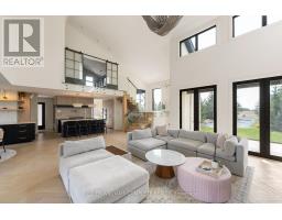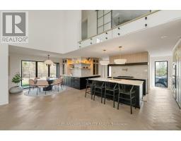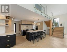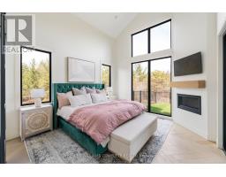 Experience unmatched luxury and craftsmanship in this breathtaking custom-built bungaloft, completed in 2024 and set on nearly six private, picturesque acres. From the moment you step inside, the soaring cathedral ceilings, sun-drenched interiors, and dramatic black-trimmed windows create a sense of grandeur and sophistication. Every detail of this home has been carefully curated for both beauty and function. The main living area showcases exquisite herringbone hardwood floors, a stunning built-in gas fireplace with custom shelving, and expansive sliding doors leading to a fully covered outdoor retreat the perfect spot for entertaining or unwinding in peace. The kitchen is a true showstopper: sleek black cabinetry paired with natural oak uppers, granite countertops, a gas cooktop, an oversized butlers pantry, and abundant storage for the serious chef. The elegant dining area features built-in cabinetry and shelving, offering a stylish yet intimate space for family meals or dinner parties. The luxurious primary suite is a private sanctuary on the main level, complete with its own gas fireplace, walkout to the covered deck, spa-style ensuite, and a walk-in closet with center island and built-in vanity. Also on the main floor are a designer powder room, a dream laundry room, and a custom mudroom with a built-in dog bath. A few steps up, discover a dramatic library with custom shelving, and in the loft, a fully equipped gym, additional bedroom, and 4-piece bath. For extended family or guests, a self-contained in-law suite offers the ultimate in privacy and comfort with its own entrance, living room, kitchen, bedroom, laundry, and 4-piece bath all perfectly integrated yet completely independent. With a triple-car garage, nearly six acres of tranquility, and flawless attention to detail throughout, this home is truly one-of-a-kind. If you've been searching for a property that exceeds every expectation, this stunning estate checks every box. (id:61594)